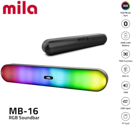 Mila Soundbar MB-16 Serisi, RGB Işıklı Bluetooth Hoparlör