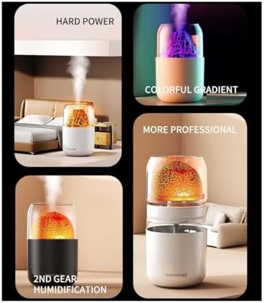 Mini Volkan Alev Efektli Aromaterapi Hava Nemlendirici – 14×7 cm USB Şarjlı Renk Değiştiren LED Işıklı Masa Üstü Difüzör