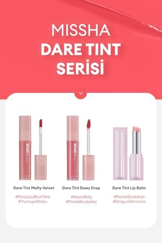 Kadifemsi bitiş sunan özel formül Kolay uygulanan kremsi doku Dudakları kurutmayan yapı Zengin pigmentli renk Gün boyu kalıcı etki MISSHA Uzun Süre Kalıcı, Bulaşma Yapmayan, Kadifemsi Bitiş Sunan Tint Dare Tint Melty Velvet (Rosy Cloud)