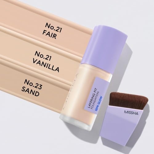 Blue Pigment teknolojisi 24 saat kalıcı etki SPF38+ PA++ koruma Probiyotik içerikli formül Mat ve nemli bitiş MISSHA Yarı Parlak Bitişli Nemlendirici Fondöten Layering Fit Foundation Semi Glow (NO.23 SAND)