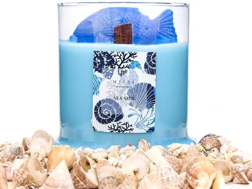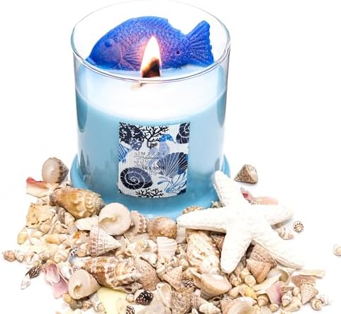 MİSSİ Büyük Üfleme Cam Balık Dekorlu Açık Mavi Aqua Mediterian Kokulu Vegan Mum (380 gr)
