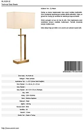 ML-9109-1E Eskitme Kaplama Masa Lambası, E27, Metal, 35cm