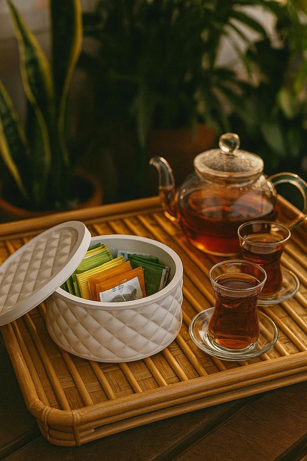 TASARIM: Minimalist çizgili form, mat kırık beyaz yüzey; modern dekorasyonlarla uyumlu. SET İÇERİĞİ: 4 adet kapaklı organizer – Çap 10,5 cm | Yükseklik 6,5 cm. MALZEME: Seramik/beton görünümlü kompozit; sağlam, uzun ömürlü ve şık. KULLANIM ALANI: Banyo, makyaj masası, mutfak, ofis veya salon; çok yönlü düzenleyici. EL İŞÇİLİĞİ: El yapımı değil; standart ölçülerde, doğal görünümlü modern tasarım. Modern Çizgili Kapaklı Organizer – 4 Parça Set (10,5 × 6,5 Cm)