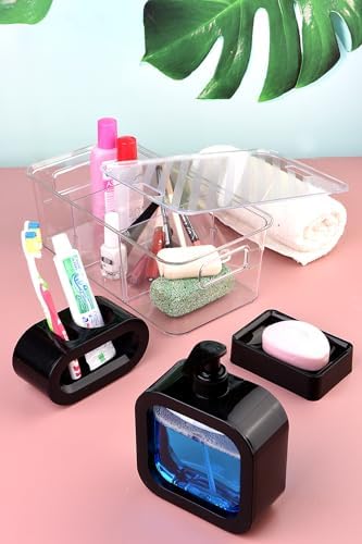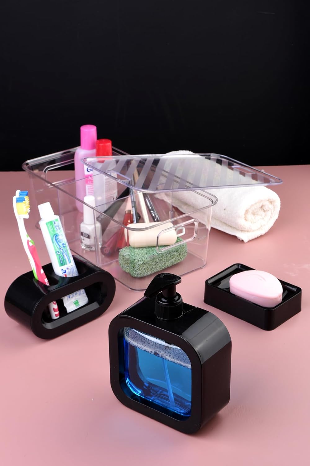 plastik mika Modern Tasarım 4 Parça Banyo Aksesuar Seti modern hafif lüks yıkama kabı Banyo Aksesuarları Banyo Seti Losyon Şişeleri, Diş Fırçası Tutacağı, Diş Kupası, Sabunluk siyah