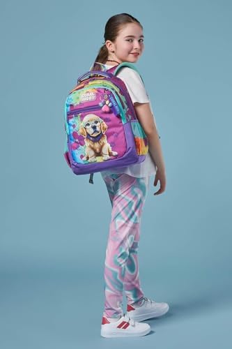 Mor Pembe Köpek Desenli Kız Çocuk İlkokul Çantası ve Günlük Sırt Çantası