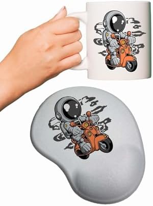 Motorlu Astronot Baskılı Bilek Destekli Mouse Pad + Kupa Bardak Mug