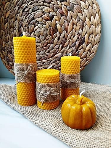 Mum Dekoratif Hediye Kutusu 4 Lü Set Doğal Petek Beeswax Candle Bal Kabağı (Jüt kumaş)