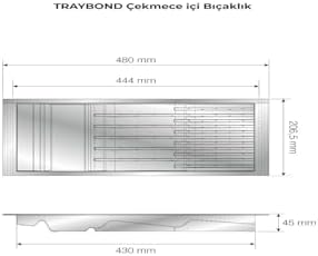 Mutfak Çekmece Içi Beyaz Modüler Bıçaklık 20,5Cm X 48Cm (Boydan 4CM Kesilebilir)