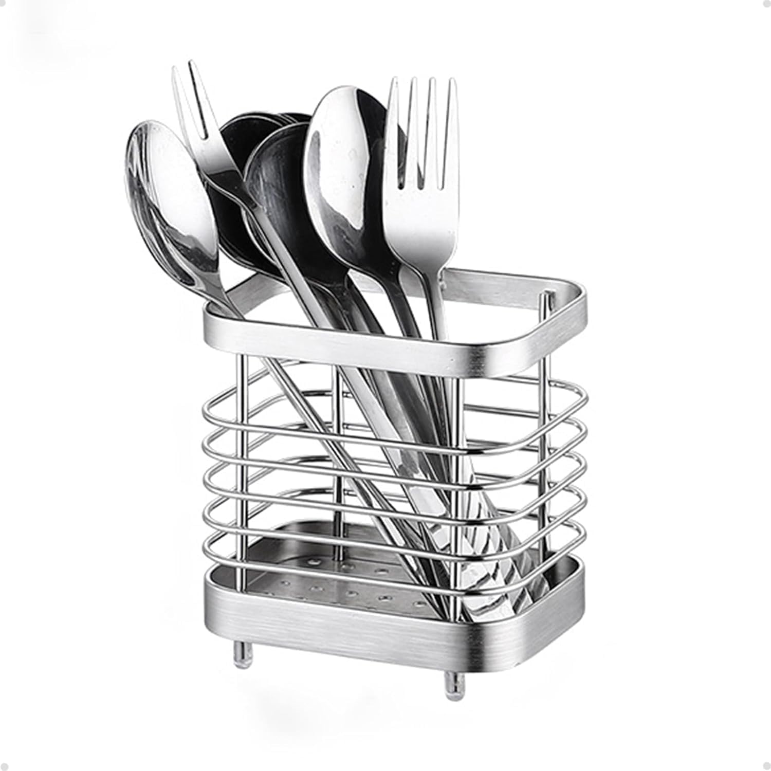 Mutfak eşyası tutucu, Paslanmaz Çelik Tezgah Üstü Mutfak Aletleri Tutucu, Bıçak ve Kaşık Organizatörü, Su Tahliye Delikli Kurutma Silindiri (Gümüş Renk)