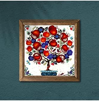 oryantasyon: Manzara tema: Ağaç Nar Ağacı Taş Duvar Tablosu Ahşap Çerçeveli Duvar Dekoru Art 25x25cm W1-03
