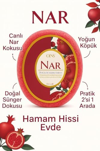 Nar Doğal Süngerli Sabun, Vücut Temizliği, nar Kokulu, 120 gram, Paraben İçermez