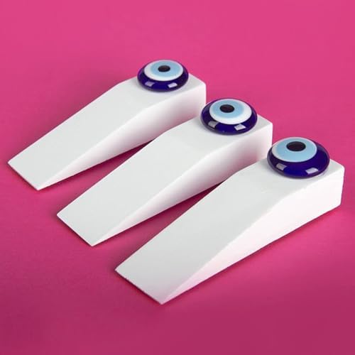 Nazar Boncuklu El Yapımı Beyaz Ahşap Kapı Stoperi – Geleneksel ve Modern Evler için Güvenli Kapı Takozu – Çizilmez Tabanlı Kaymaz Kapı Desteği