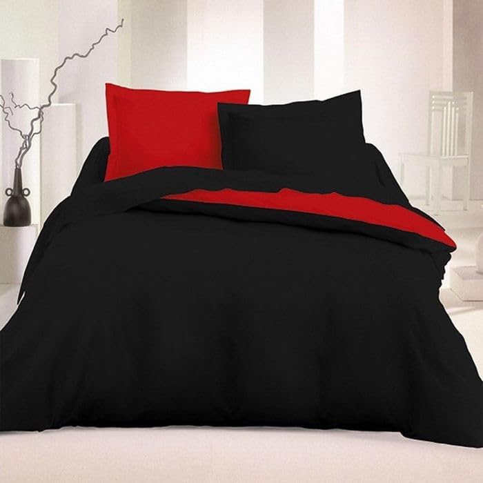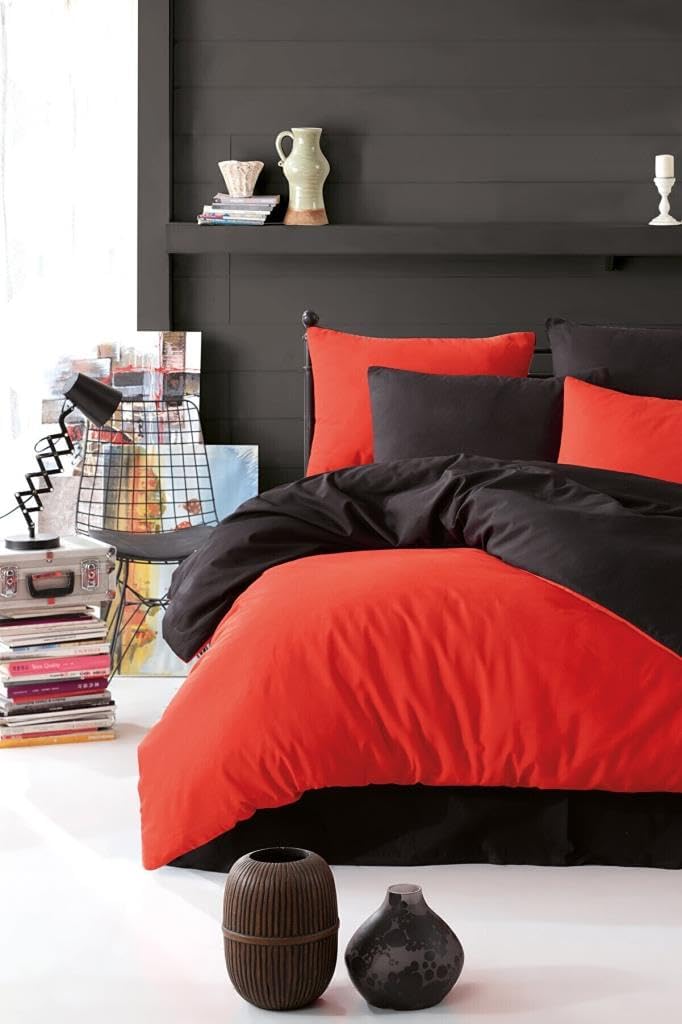 Nevresim Takımı Çarşafı Lastikli Çift Taraflı Çift Kişilik 200×220 -Siyah Kırmızı