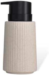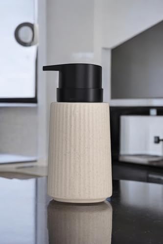 New Max Premium Serisi 300 ML Sıvı Sabunluk Pompalı Çizgili Seramik Sıvı Sabunluk Dispencer Bej