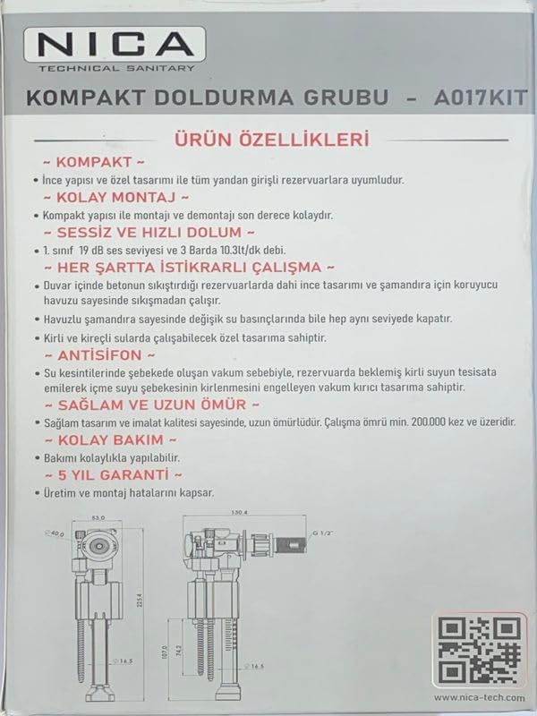 NICA Bütün gömme rezervuarlara uyumlu sessiz kompakt doldurma grubu şamandıra flatör