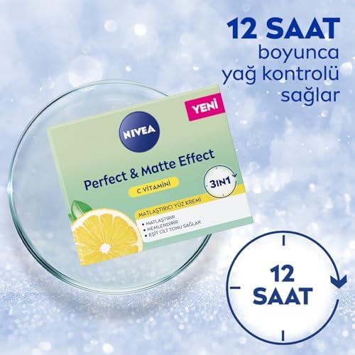 NIVEA Perfect & Matte yüz bakım kremi C Vitamini içeği ile cildinize 3 lü etki sağlar Cildinizi matlaştırır Eşit Cilt tonu sağlar Cildinizi Nemlendirir Yağlı Ciltler için uygundur NIVEA Perfect & Matte Effect C Vitaminli Yüz Bakım Kremi (50 ml), Matlaştırıcı, Nemlendirici Yüz Kremi, Eşit Cilt Tonu