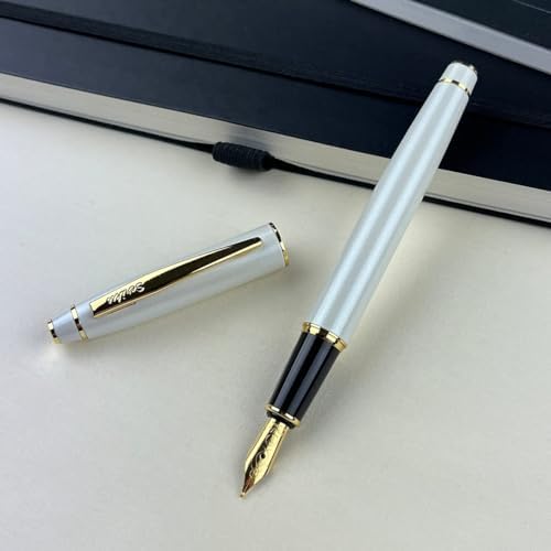 Menşe Ülke: Türkiye Beyaz lake kaplama kapak ve gövde altın kaplama klips halka ve uç Beyaz lake kaplama gövde altın kaplama klips halka ve uç Noble 35 Dolma Kalem Inci Beyazı