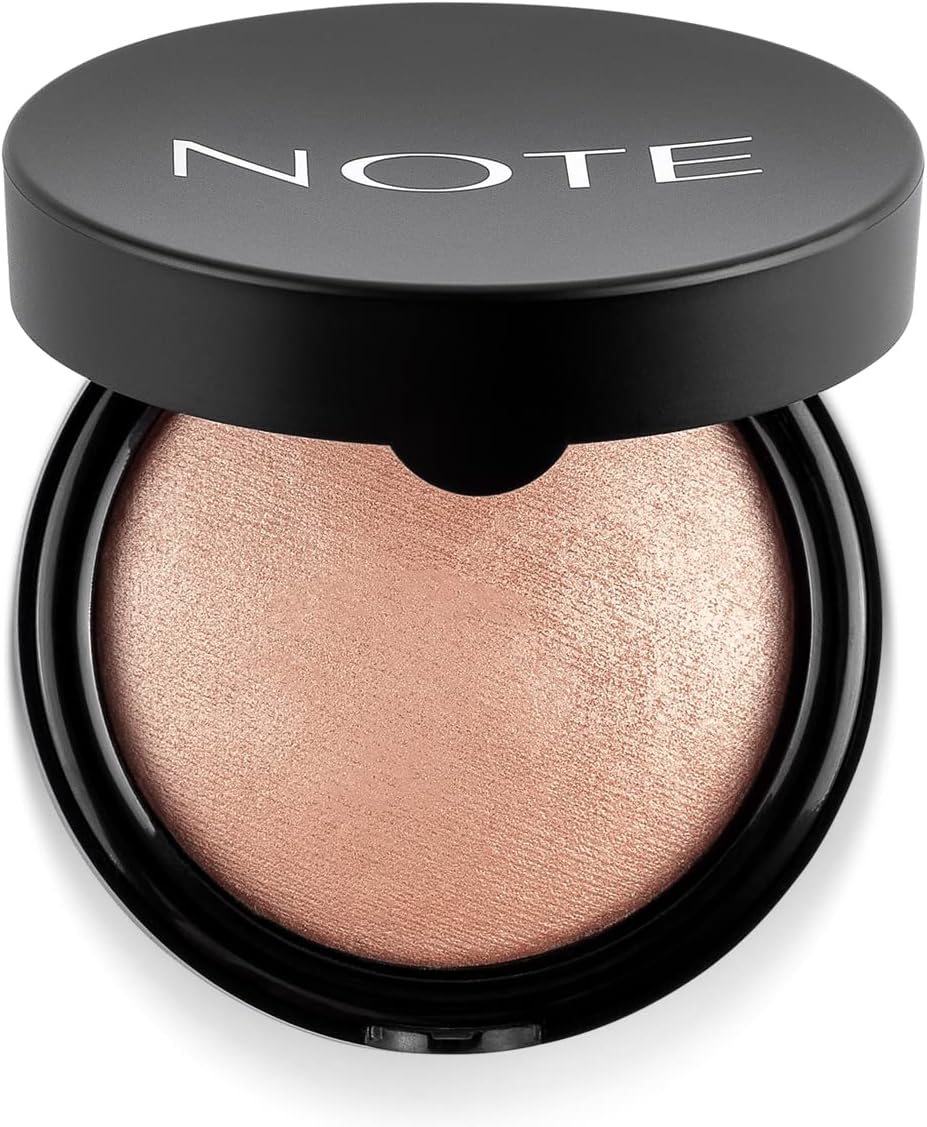 Tüm ciltler için uygundur İpeksi doku Sıkıştırılmış ve fırınlanmış özel formüle sahip Paraben içermez Dermatolojik olarak test edilmiştir Note Baked Powder 01 Stardust Işıltılı Bitişli Highlighter Toz Yüz Pudrası