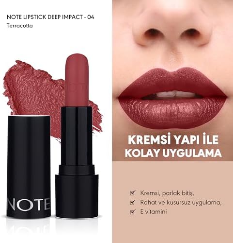 Yarı parlak bitiş Yumuşak ve ipeksi doku Yoğun renk verme özelliği Paraben içermez Dermatolojik olarak test edilmiştir Note Deep Impact Lipstick 04 Terracotta Kremsi Dokulu Yarı Parlak Ruj, Kırmızı