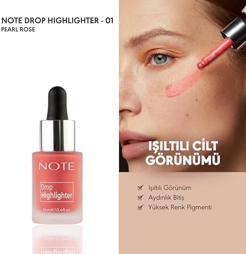 Tüm ciltler için uygundur Likit aydınlatıcı Şeffaf kapatıcılık Paraben içermez Dermatolojik olarak test edilmiştir Note Drop Highlighter 01 Pearl Rose Işıltılı Likit Aydınlatıcı