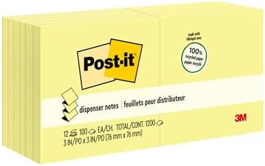 Notes, geri dönüşüm, 7,6 x 7,6 cm, kanarya sarısı, 12 PADS Pro Pack (R330RP-12YW)
