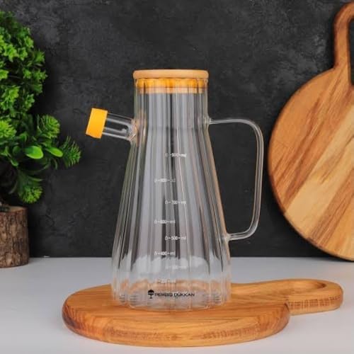 Ölçekli Cam Yağdanlık, Paslanmaz Çelik, Gümüş ve Siyah, Silindirik, Modern Tasarım, Bambu Kapaklı, 900ml Kapasiteli, Sızdırmaz Özellikli, Mutfak İçin (1)