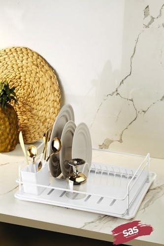Ömür Boyu Paslanmaz Bulaşıklık Bulaşık Sepeti Tek Katlı Tabaklık Termo Plastik Kaplama Beyaz TBK-01