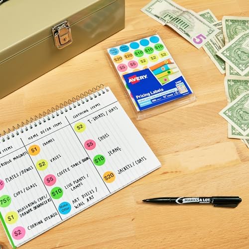 10 sent ile 20 dolar arasında değişen fiyat etiketleri ve ' Offer' etiketleriyle ürünleri hızlı ve kolay işaretleyin. Alıcıların dikkatini neon mavi, yeşil, turuncu, pembe ve sarı yuvarlak etiketlerle çekin. Dahili boş etiketlere doğrudan el yazısıyla özel fiyat etiketleri oluşturun; etiketler yalnızca el yazısına uygundur, yazıcıyla uyumlu değildir. Etiketleri, çoğu düzgün yüzeye güçlü bir şekilde yapışacak şekilde tasarlanmış çıkarılabilir yapışkan sayesinde kolayca yeniden konumlandırın veya çıkarın; yapışkan temiz ve zahmetsiz şekilde soyulur. Her paket, garaj satışları, bahçe satışları, kermesler, el işi fuarları, çiftçi pazarları ve daha fazlası için mükemmel olan 350 adet 19 mm renk kodlu etiket içerir. Önceden Basılmış Çıkarılabilir Garaj Satış Etiketleri, 0,75 inç, Yuvarlak, 350'li Paket (5480), Çeşitli Neon