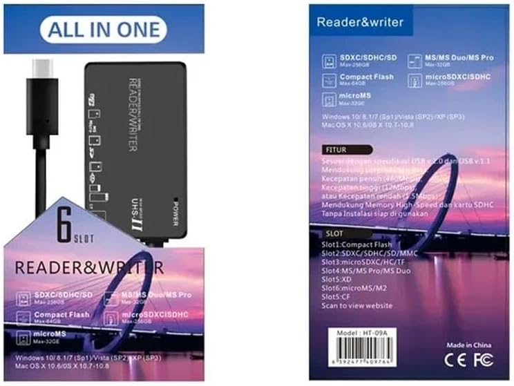 SDXC – SDHC – SD – MMC: max 256GB Compact max 64GB Micro MS Max 32GB MS/MS Duo / MS Pro Max 32 GB MicroSDXC / MicroSDHC Max 256 GB USB v.2.0 ve USB v.1.1 spesifikasyonlarıyla uyumludur Tak çalıştır üründür. Herhangi bir kurulum gerektirmez. Tüm veri aktarım hızlarını destekler: 480Mbps / 12Mbps / 1,5Mbps Fotoğraf makinelerinde kullanılan kablo ile gelir. Mini USB to USB 2.0 Onezero ZR 101 MT56 Compact Çoklu Kart Okuyucu Dünyadaki Tüm Kartları Okur