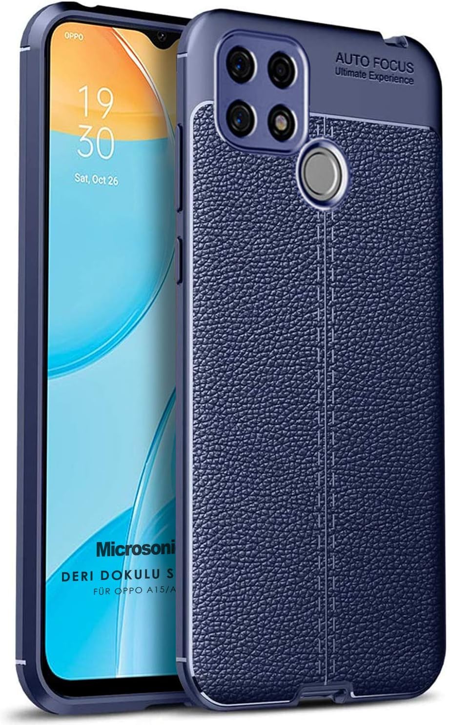Oppo A15s için Kılıf Deri Dokulu Silikon Lacivert [A15s ile Uyumlu Kılıf – Lacivert]