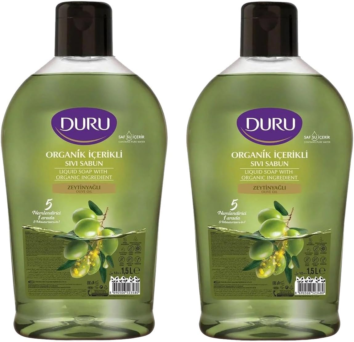 Organik İçerikli Zeytinyağlı Sıvı Sabun, 1500 ml, 2'li Paket
