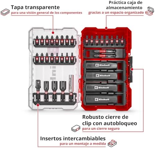 Sağlam uçlar – Sağlam, kumlanmış S2 çeliği sayesinde ve ekstra uzun 90 mm uçları ile en yüksek kalite ve dayanıklılık ile etkileyicidir. Darbelere dayanıklı altı köşe lokma anahtarlar – uç setindeki dayanıklı 50BV30 çelikten yapılmış E 6.3 şaftlı manyetik lokma anahtarlar yüksek torklar için tasarlanmıştır. Darbeye dayanıklı uç tutucu – aksesuar setinin bir parçası, güçlü mıknatısı güvenli ve hassas uç yönlendirmesi sağlayan paslanmaz çelik manşonlu ve E 6.3 şaftlı 60 mm uç tutucudur. Orijinal M-CASE 35-Parça Darbeye Dayanıklı Uç ve Lokma Seti (25 mm Uçlar, 50 mm Uçlar, Altıgen Lokmalar, Uzun Lokmalar, Lokma Adaptörü, 60 mm Uç Tutucu, Saklama Kutusu Dahil) – 49109230