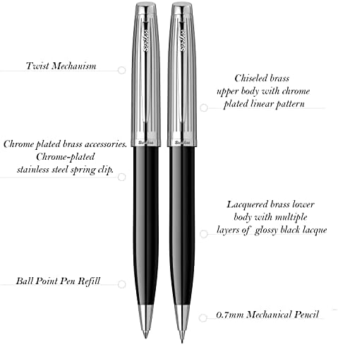 Ofis kullanımı için uygun Kırtasiye ürünü Malzeme: krom Oscar 39 Tükenmez Kalemversatil Kalem Takım Siyah Krom