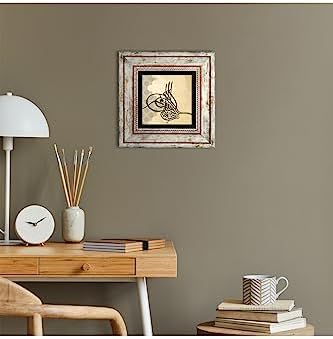 Osmanlı Tuğrası Taş Duvar Tablosu – Çerçeveli Taş Tablo – Dekoratif Duvar Sanatı – Modern Ev ve Ofis Duvar Dekoru T1-155