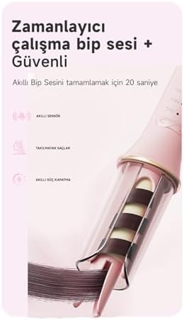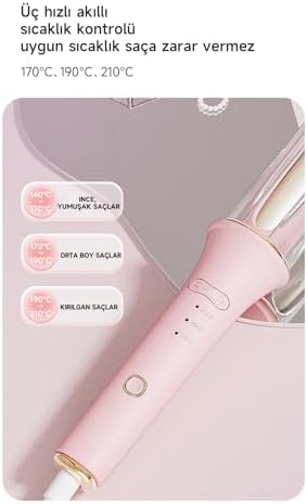 30 saniye hızlı ısınma Akıllı güç kapatma Yanma Önleyici Yalıtım 3 Sıcaklık Kontrolü °170°190°210° Otomatik Saç Maşası Kalın Su Dalgası 32mm – 30 Saniyede Isınma (Pembe)
