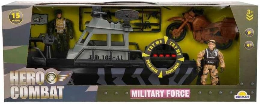 Sun-Jnd-Hro-Asker Set 1Motosiklet/1Gemi/1Fgr.15Prç.Ses/Işik Ürün model numarası: S00007077 Oyuncakmatik Sesli Ve Işıklı Askeri Araç Seti