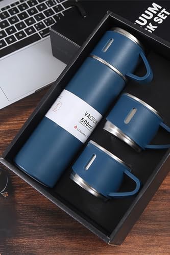 Paslanmaz Çelik Termos 3 Bardaklı Termos Seti Özel Kutulu Vakumlu Termos Set Çok Renkli (Gri)