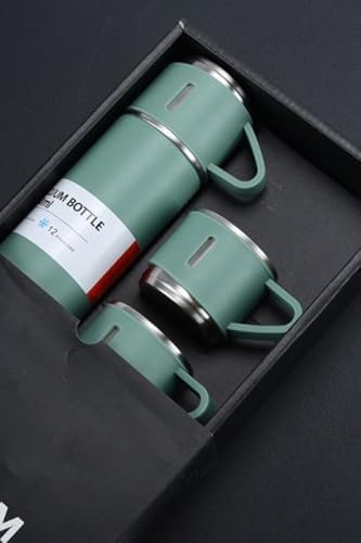 Paslanmaz Çelik Termos 3 Bardaklı Termos Seti Özel Kutulu Vakumlu Termos Set Çok Renkli Yeşil