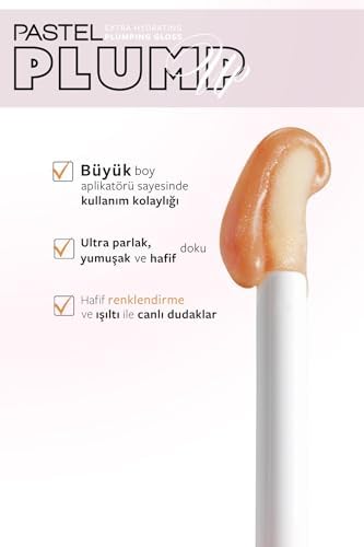 Paraben ve gluten içermez Aloe vera ve Hyalüronik asit sayesinde yoğun nemlendirme etkisi sunar Parlak, yumuşak ve hafif dokusu ile renklendiren ve ışıltılı yapı Mentol ve chili pepper baharatlı bileşen içeren formülü ile dolgunlaştırıcı etkili Pastel Plump-Up dudak parlatıcısı Hafif renklendirme ve ışıltı ile canlı dudaklar Pastel Plump Up 213 Honey Extra Hydrating Plumping Gloss – Dolgunlaştıran Dudak Parlatıcısı