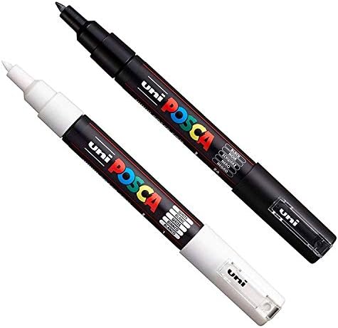 PC-1M Boya Sanatı Markör Kalemleri – Kumaş Cam Metal Kalem – Siyah + Beyaz (Her Birinden 1 adet)