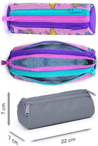Pembe Mor Dondurma Üç Bölmeli Kalem Çantası – Kız Çocuk