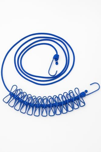Portatif Seyahat Çamaşır İpi, 12 Adet Sabit Mandallı Lastikli Esnek Tasarım, Kolay Kurulum için Metal Kancalı, Kamp, Balkon, Otel, Yurt ve Ev İçi Kullanıma Uygun Pratik Çamaşır Asma Askısı