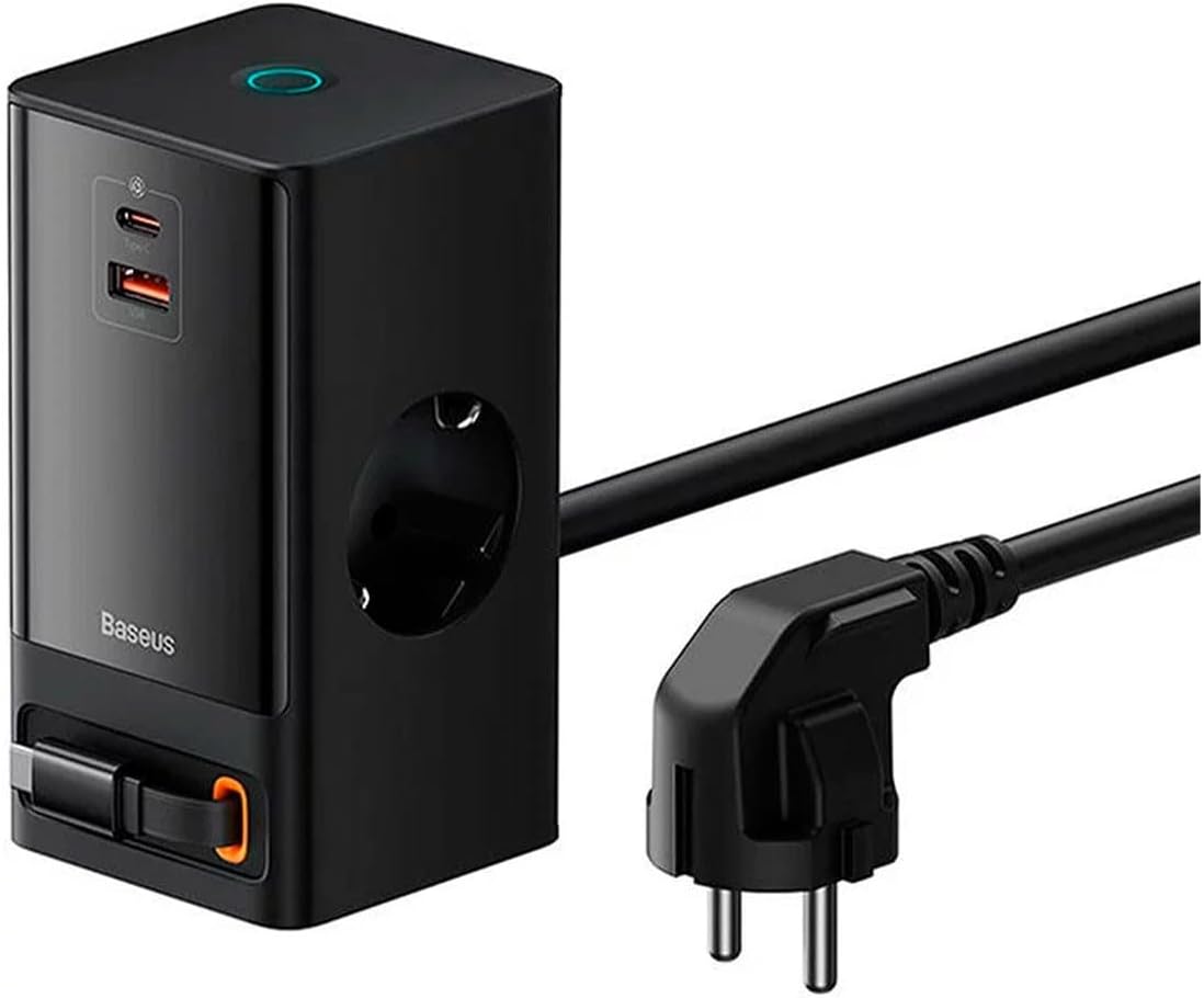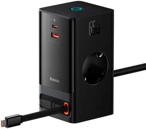 Cihaz, kompakt bir boyuta sahiptir ve uzun çubuk şeklinde tasarlanmıştır PowerCombo Dijital Priz 2AC+1U+1C+Geri Çekilebilir-C 65W 1.5m Güç Kablosu ile AB Siyah