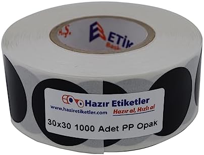 Bu ürün 30mm yuvarlak çap etiketidir 1000 adet olarak gönderilir. Bu ürün polipropilen malzemeden üretilmiştir. PP Opak Daire Çap Etiketi Rulo Etiket, 30mm x 30mm Çap 1000 Adet, Yuvarlak Siyah Zemin Baskılı Kontrol Etiketi