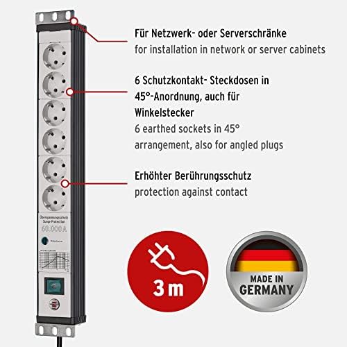 Emniyet şalteri aydınlatmalı, iki kutuplu açma / kapama değiştirilebilir şalter Pratik kablo girişi Açılı fişler için de 45 derecedüzeninde topraklama kontak soketleri Premium- Güç Şeridi 8 Soketli 3M Priz