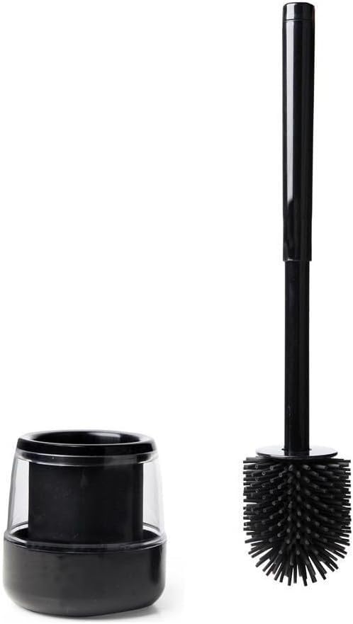 360° kauçuk fırça kafası yumuşak TPR (Termoplastik kauçuk) Çizmez Özellikli Kir ve LekeTutmaz Temizlenebilir Hazne Bükülebilir Silikon Özellikli Premium Serisi Silikon Tuvalet Fırçası Siyah