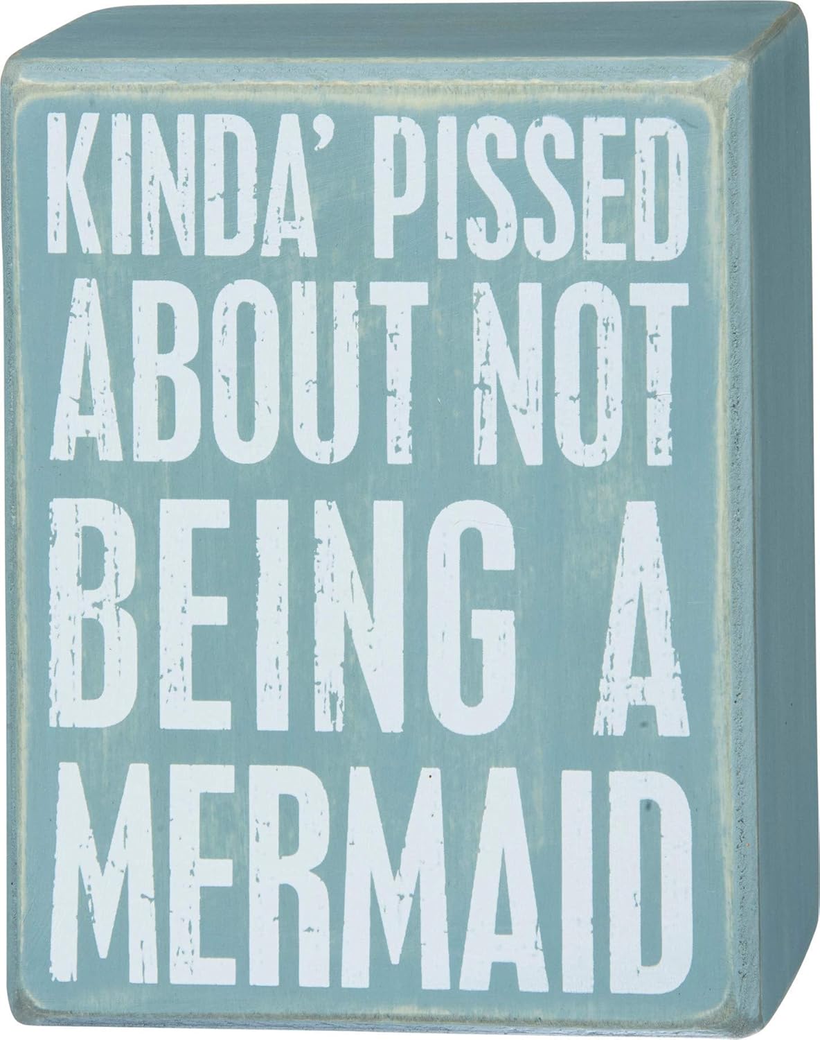 Primitives by Kathy 30835 Plajdan Esinlenen Mavi Deniz Kızı Ahşap Kutu Tabela, 10,18 cm x 12,7 cm, Kinda Pissed