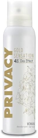 Kadınlara özel lüks koku Ter ve koku karşıtı 48 saat etki Alkol içermeyen hassas formül Beyaz çiçek ve misk notaları Kıyafetlerde leke bırakmaz PRIVACY Gold Women Sym Deodorant, 150 Mililitre PRIVACY Gold Women Sym Deodorant, 150 Mililitre