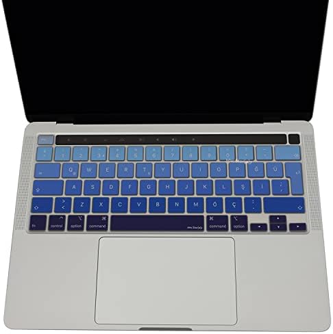 Pro 13 inç Klavye Koruyucu Silikon Türkçe Q – M1/M2 ID Uyumlu – A2338 A2289 A2251 – Sıvı/Toz Korumalı İnce Kaplama – 16 inç A2141 ile de Uyumlu Lacivert Mavi