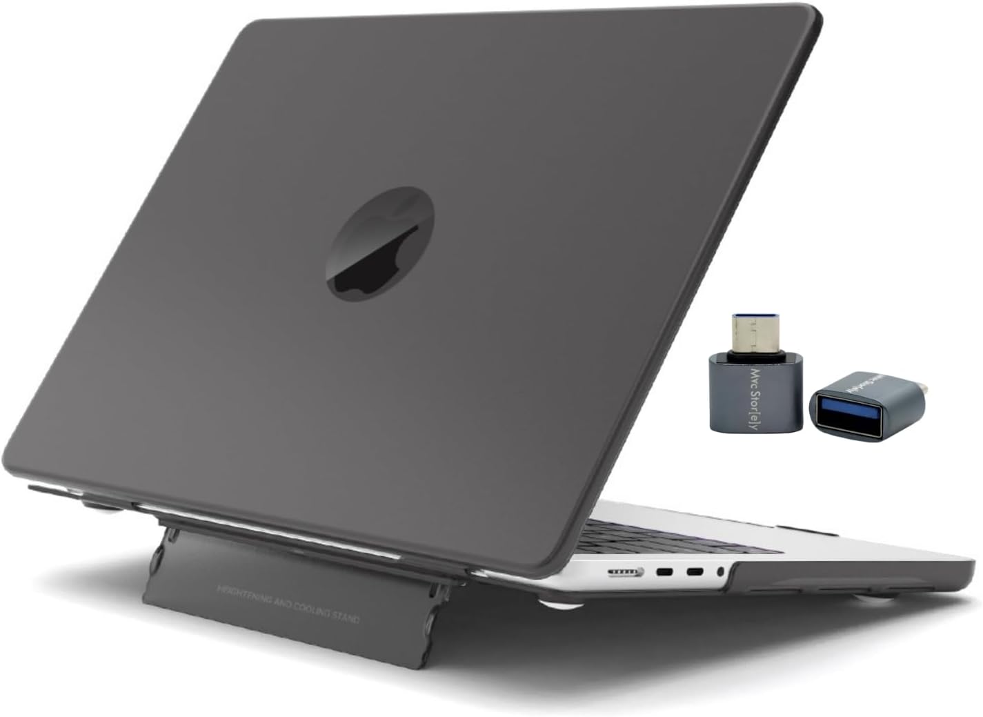 Pro 14.2 Kılıf 2025 M5 Pro Max Uyumlu Standlı Mat Şeffaf Sert Kapak Isı Dağıtımlı İnce Koruma PC Hard Shell Parmak İzi Bırakmaz Katlanabilir Stantlı Tasarım Siyah
